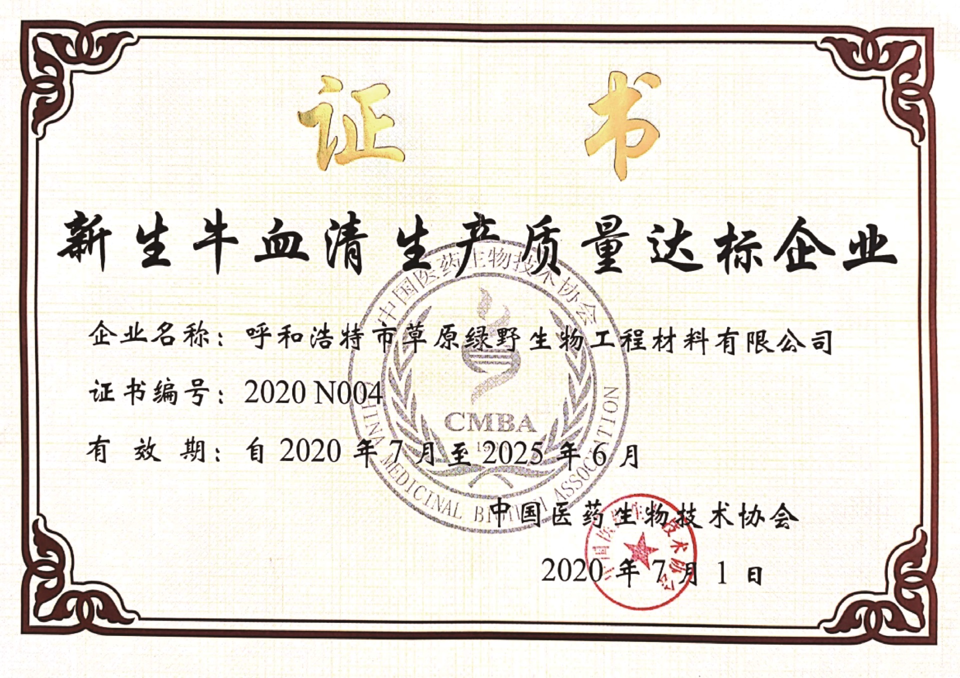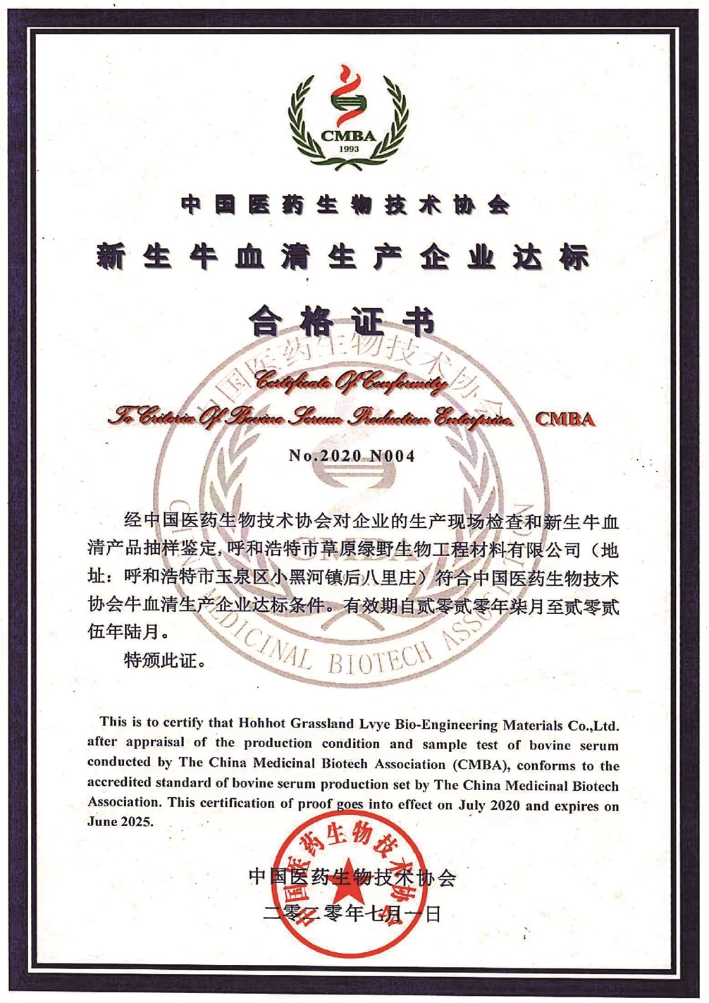 公司至今已多次通過中國醫(yī)藥生物技術(shù)協(xié)會《牛血清生產(chǎn)企業(yè)達(dá)標(biāo)》認(rèn)證、《牛血清生產(chǎn)質(zhì)量達(dá)標(biāo)企業(yè)》認(rèn)證。ISO9001質(zhì)量管理體系認(rèn)證、ISO45001職業(yè)健康安全管理體系認(rèn)證、ISO14001環(huán)境管理體系認(rèn)證、ISO13485醫(yī)療器械質(zhì)量管理體系認(rèn)證、ISO50001能源管理體系認(rèn)證、GB/T29490知識產(chǎn)權(quán)合規(guī)管理體系認(rèn)證、AAA級信用企業(yè)認(rèn)證、A級納稅單位評審等。
